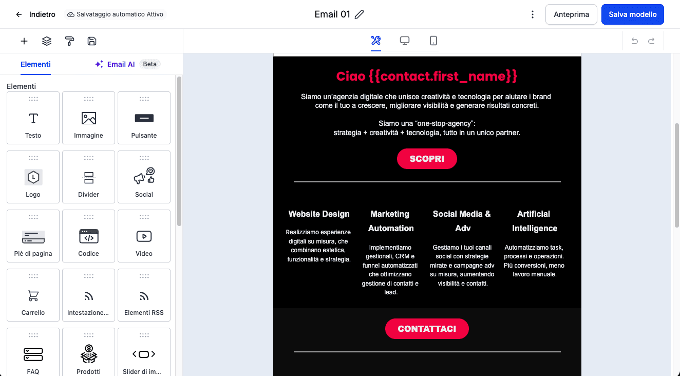 "Automatizzi le attività ripetitive, analizzi i risultati senza fatica e fai arrivare il messaggio giusto, alla persona giusta, nel momento perfetto."